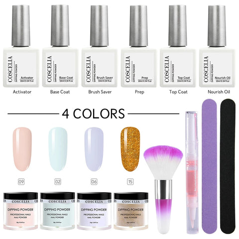 While most starter kits come with classic reds and subtle pinks, this powder set offers three shades of plum and a subdued blue for an autumnal manicure. It also comes with a brush cleanser so you don't have to worry about leftover powder from previous manicures speckling your uniformed dip.