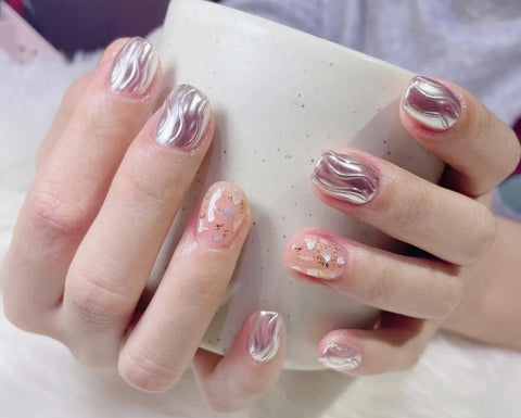 Aurora nail art is really beautiful. It doesn't need accessories, the colour alone makes it stand out from the crowd. Although it is a solid colour, it has a glamorous glossy finish. The so-called universe on your fingertips is probably talking about aurora nail art. The gradient colours are gentle to the core. Combined with short nails, it's the perfect combination of cute and stylish. It is also a nail art that can be done at home.