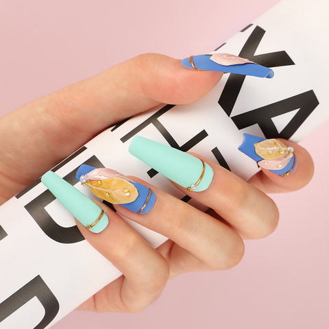 There is also a blue nail design