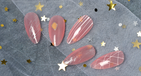 The nail art in the picture uses light pink as the base color, which is understated and gentle; with the smooth white lines, it makes the whole nail art look simple and clean, daily and versatile. When you choose to do a more complex and linear graffiti design on your nails, most nail technicians will make use of the nail spider gel polish to complete it. Because hand-drawn very test of technology and can not guarantee the unity of the line, pull the nail spider gel polish is very good elasticity is not easy to break, nail technicians can be manipulated through the strength to complete the drawing of very fine lines, and the overall aesthetic sense of the whole, the degree of smoothness is also very good.