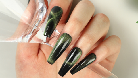 Cat eye gel polish, as the name suggests, the effect is like a cat's eyes, can be in the light of the change will then show different light and shadow. The manicure in the picture is like the eyes of a cat in the dark, deep and mysterious. No light when it looks very ordinary, but when you are in the light will find that it reflects the light will form a narrow bright band of light, like a cat's eye stone as striking!
