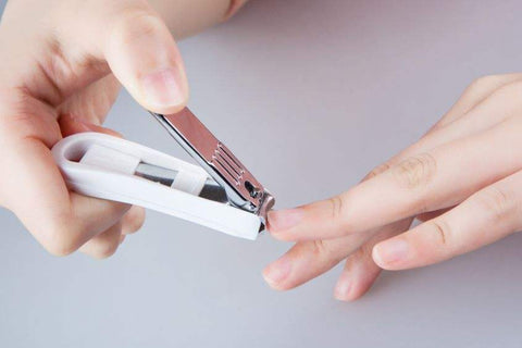 (1) Use a nail clipper to trim from the front edge of the nail,