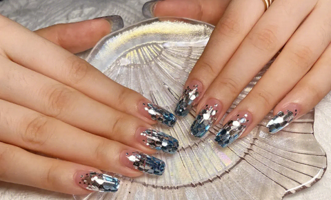 Diamonds are a single item that every woman can not refuse, whether it is a ring or a necklace, in the sunlight refracts the colorful light, showing the visual effect of glitter. When we match, we can choose glitter nail art to show the same effect.