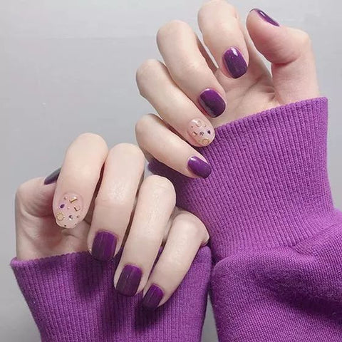 Purple nail design has a sense of mystery that other colors cannot convey. Purple combines the calmness of blue and the strong energy of red. Purple is often associated with the royal family, symbolizing power, luxury, nobility, and ambition. It also conveys wealth, extravagance, and so on. Therefore, it is a good idea to paint purple on your nails at any time.