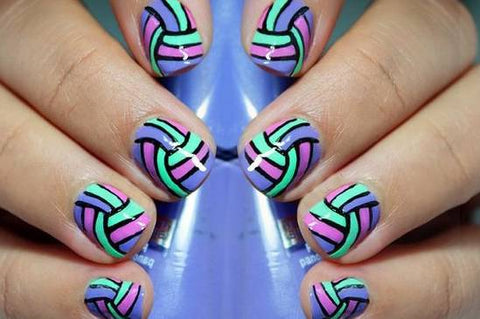 Choosing ball patterns to design nail art is also a unique and individual expression. For example, this nail art uses the texture of a volleyball. I believe its owner must be a volleyball fan. Pair it with your favorite color, and this unique nail art is designed.