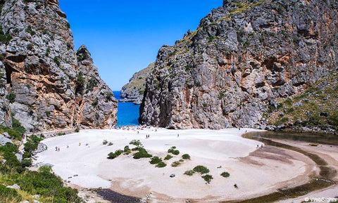 This is a beach located in Spain. It requires a 6-hour hike or a boat ride to get there, but it's definitely worth it. Pristine white sandy beaches, clear blue waters and natural surrounding landscape. How can such a view not be desirable.