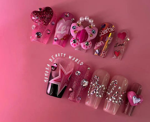 No1. Barbie Can Be Anything, Women Can Be Anything. This manicure is full of bright colors and exaggerated nail decoration. Maybe telling us the art has infinite possibilities, our lives also have infinite possibilities.